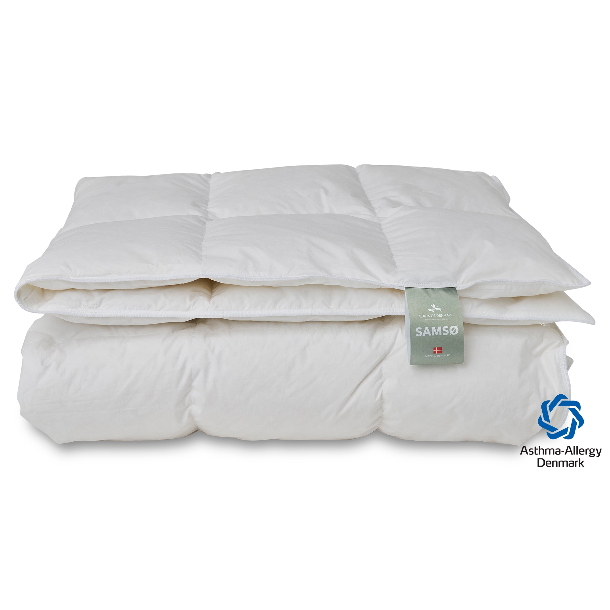 Forside »Dyner » Enkeltdyner » Enkeltdyne 140x200 cm Sommerdyne 140x200 cm - Moskusdun dyne - Samsø-dynen - Quilts of Denmark Spar50% Norvigroup 5.199,002.585,00NOKSpar 2.614,- Få på lager Trustpilot Antall Legg i kurv Se mer fra: Norvigroup Artikkelnummer:2055006 Les vår dyneguide Les om vedlikehold av dyner og puter Se vårt store utvalg av puter Har du spørsmål om produktet? Sommerdyne – DanskBæreevne: Over 1190 % moskusdun Størrelse: 140x200 cm - enkeltdyne Type: Sommerdyne - Ekstra sval dyne Fyld: 90 % moskusdun Brand: Quilts of Denmark - Samsø Produsert i: Danmark Bæreevne: Over 11 (gammel målemetode) Bæreevne: 725 (ny målemetode) Fyldvekt: 240g Bolster: 100 % økologisk bomull 60/60 - TC280 Konstruksjon: 6x8 kassettdyne med pipingskant Vask: 60° (Viktig å bruke enzymfritt vaskemiddel) Tørketrommel: Må tørkes med tørkeballer Garanti: 10 år Sertifisering: EN12934-normen - Klasse 1 dun Sertifisering: NOMITE - Fri for husstøvmidd Sertifisering: DOWNAFRESH - 100 % rene dun Sertifisering: Down pass - Høyeste dyreetiske forhold Sertifisering: STANDARD 100 by OEKO-TEX® (1176-194) Dynen leveres i praktisk oppbevaringstaske Dynen er både svanemerket og anbefalt av Asthma Allergy Nordic. Se alle våre puter fra Ø-serien Samsø-dynen - En danskprodusert sommerdyne fra Quilts of Denmark. En kvalitetsdyne laget av 100% økologisk bomull og med varmebehandlet og optimalt renset dun. En deilig, lett og luftig dyne, som du uten tvil vil finne behagelig å sove med i de varme sommermånedene. SAMSØ er serien som har flest sertifiseringer og godkjenninger når det gjelder bærekraft og for ikke å inneholde stoffer som kan forårsake hudallergi. SAMSØ-dynen leveres også i en lekker pose laget av resirkulert materiale. Se vårt store utvalg av sengetøy i 140x200 cm her Kolleksjonen med danske Ø-dyner er designet, utviklet og produsert i Danmark med fokus på kvalitet, miljø og dyrevelferd. Quilts of Denmark samarbeider med en rekke uavhengige organisasjoner for å sikre kvaliteten og integriteten til produktene deres. De små øyene ligger i forskjellige farvann – fra Nordsjøen der de røffe bølgene ruller i land, og noen ganger når stormfulle høyder – til de stille fjordene, vikene og buktene der fred, ro og idyll hersker. Quilts of Denmark er dunprodukter av høy kvalitet som er laget i Danmark, av mennesker med ekte lidenskap. Nordisk kvalitet uten kompromiss." Tilbake til Enkeltdyne 140x200 cm