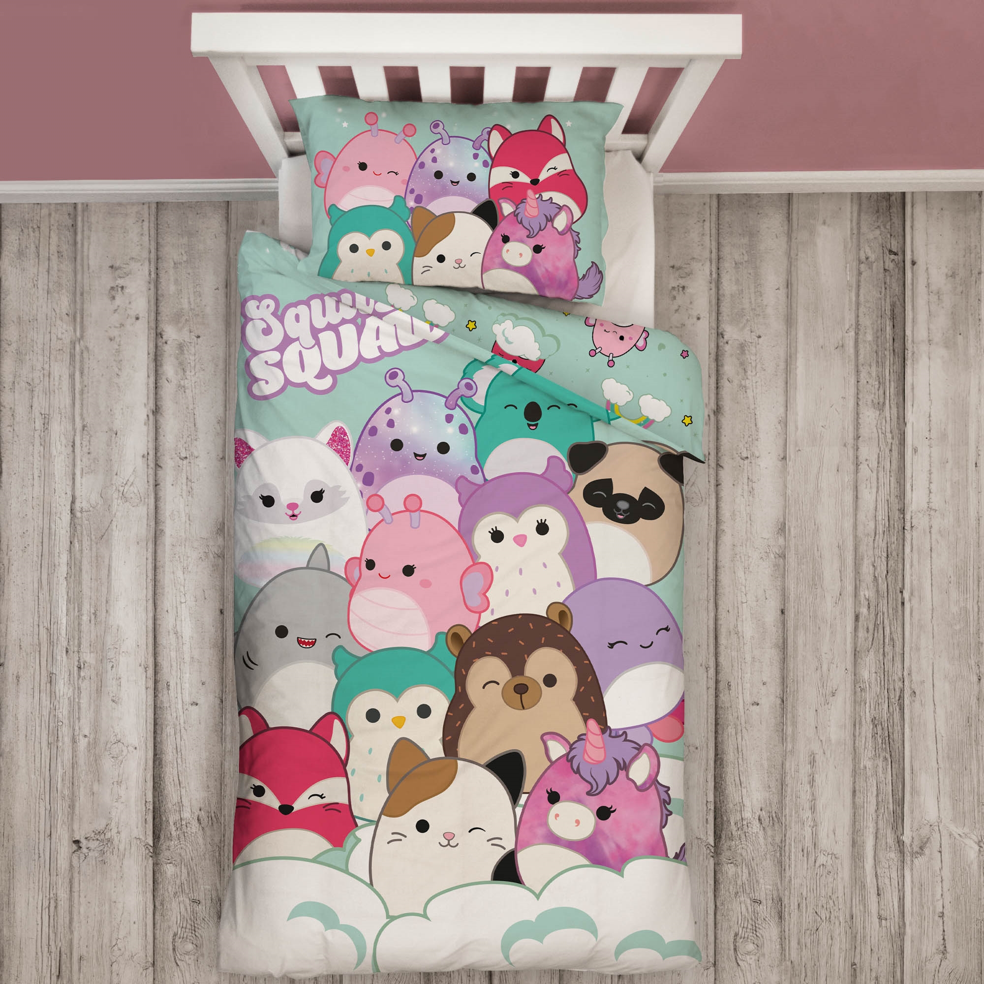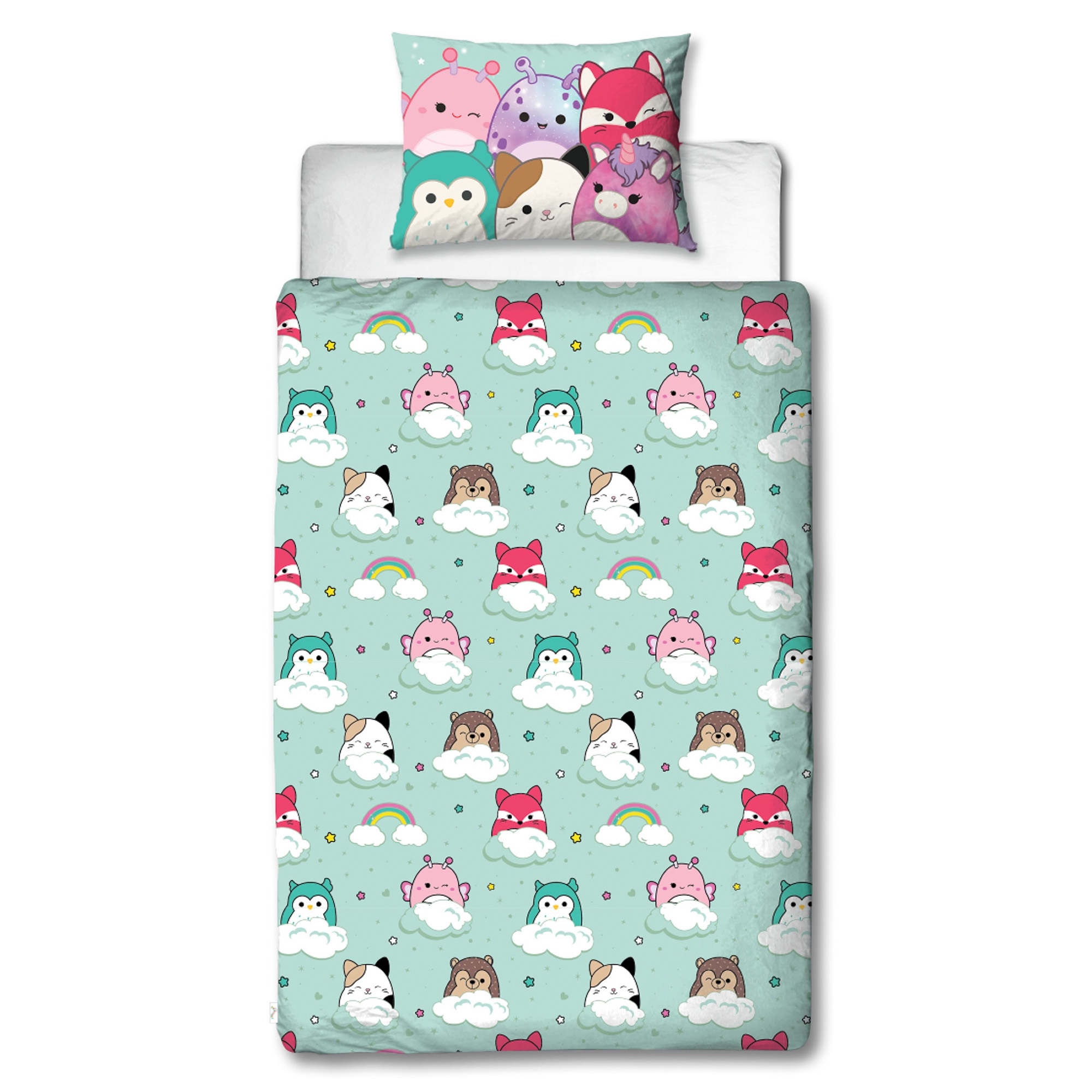 Forside »Sengetøy » Sengetøy til barn » Sengetøy til barn 140x200 cm Squishmallows sengetøy 140x200 cm - 100 % myk bomull - Squishmallows sengesett - Vendbart design Spar33% Licens 499,00335,00NOKSpar 164,- På lager Trustpilot Antall Legg i kurv Se mer fra: Licens Artikkelnummer:1806-1 Les vår sengetøyguide Se vårt store utvalg av lagner Se vårt store utvalg av dyner 140x200 Har du spørsmål om produktet? Myk og deilig kvalitetBarnas favorittOEKO-TEX sertifisert Dynetrekk: 140x200 cm Putetrekk: 60x63 cm Materiale: 100 % myk bomull Farge: Lyseblå Motiv: Squishmallows Design: Vendbart - Forside med Squish Squad, bakside med all-over print Lukking: Dyne med knapper, putetrekk med overlapp Vask: 60° Tørketromling: Ja Tåler stryking: Ja Sertifisering: STANDARD 100 by OEKO-TEX® (11-31077 Shirley). Din garanti for at produktet er fritt for helseskadelig kjemi. Sengesett med et flott motiv av Squish Squad. Det myke sengesettet produsert i 100 % bomull er både pustende og absorberende, og gir god sovekomfort. Et slitesterkt bomulls barnesengesett som gjør barnerommet litt mer spennende. Veldig søtt sengesett med Squishmallows. Squishmallows er kjent blant alle barn som de supermyke runde kosedyrene og kommer i en rekke forskjellige farger, størrelser, dyr og teksturer. Dette sengesettet er vendbart og har store Squishmallows på forsiden og små Squishmallows på skyer med regnbuer på baksiden. Det er alltid en god idé å bruke barnets interesser for å skape et tryggere og mer spennende sovemiljø for barnet. Sengesettet er produsert i 100 % myk bomull som gjør settet slitesterkt og med høy pusteevne. Den rene bomullskvaliteten gir et lekkert og mykt sengesett som bidrar til god sovekomfort for barnet. Bomullssengetøy kan vaskes på 60° i vaskemaskinen, noe som også bidrar til å opprettholde et høyt hygienisk nivå. Sengetøyet er i tillegg OEKO-TEX sertifisert, noe som er din garanti for at settet er fritt for skadelig kjemi. Gå på jakt etter favorittene og mye mer i vårt store utvalg av tilbehør til barneuniverset For barnet bør sengen være et trygt sted, og alle elementene skal sammen skape myke og fine omgivelser hvor barnet kan finne ro. Bruk derfor gjerne barnets interesser for å skape et trygt soverom for barnet. Hos oss finner du et stort utvalg av tilbehør til sengen og barnerommet, alt fra lagner til dyner, puter, sengetøy og mye mer, og masse produkter med alle barnas favoritter på. Alt sammen elementer som kan bidra til å skape det rette sovemiljøet og rommet for ditt barn. Her kan du finne deilige og myke kvalitetslagner Tilbake til Sengetøy til barn 140x200 cm