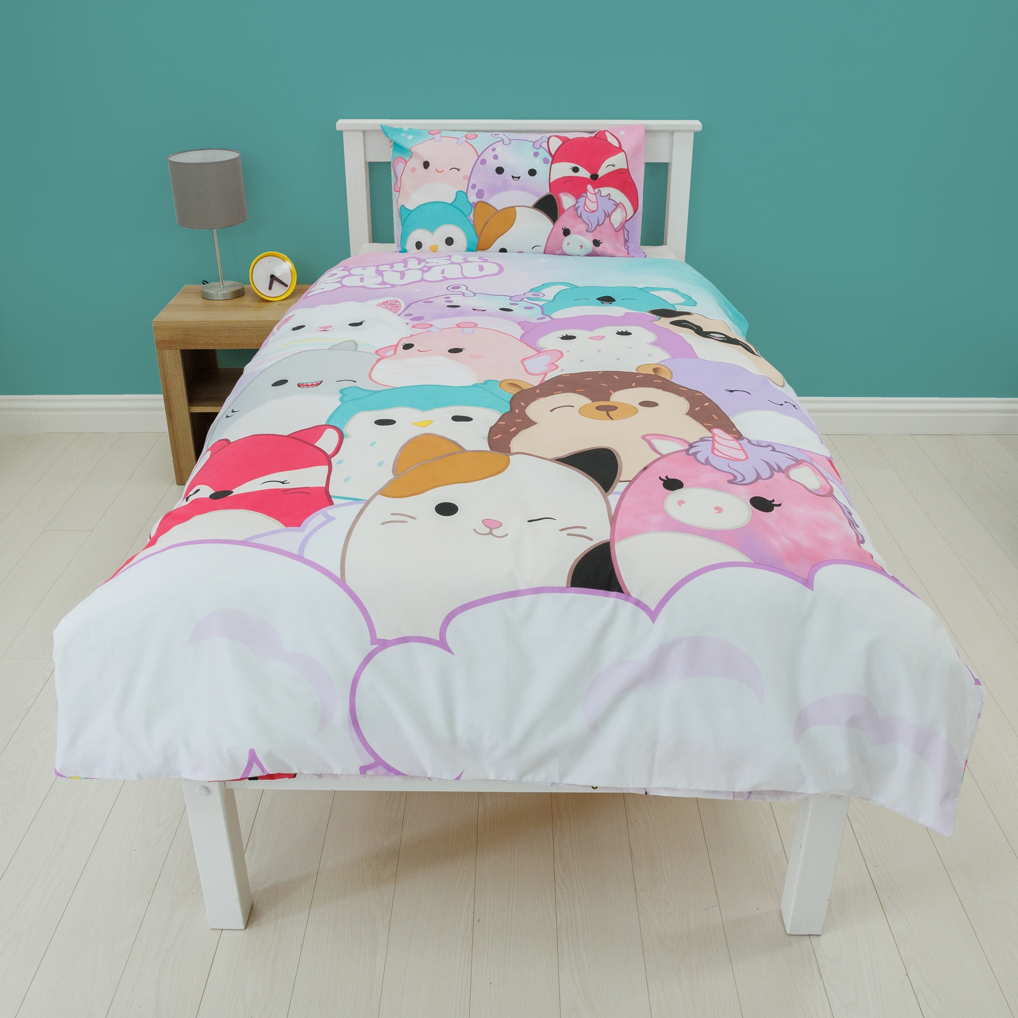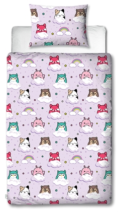 Forside »Sengetøy » Enkelt sengetøy » Enkelt sengetøy 150x210 cm (svenske mål) Squishmallows sengetøy – 150x210 cm – Squishmallows 2 i 1 sengesett – 100 % bomull Spar20% Licens 499,00399,00NOKSpar 100,- På lager Trustpilot Antall Legg i kurv Se mer fra: Licens Artikkelnummer:1806-3 Les vår sengetøysguide Se vårt store utvalg av laken Se vårt store utvalg av dyner 150x210 Har du spørsmål om produktet? Sengetøy – Squishmallows100 % bomull150x210 cm Dyne: 150x210 cm Putetrekk: 50x60 cm Materiale: 100 % bomull Farge: Flerfarget Motiv: Squishmallows Design: 2 i 1 Lukking: Dyne med knapper og putetrekk med overlapp Vask: 60° Tørketrommel: Ja Kan strykes: Ja Sertifisering: STANDARD 100 by OEKO-TEX® (11-31077 Shirley) Veldig søtt sengesett med Squishmallows. Squishmallows er kjent blant alle barn som den supermyke, runde bamsen og kommer i en rekke forskjellige farger, størrelser, dyr og teksturer. Dette sengesettet er vendbart og har store Squishmallows på forsiden og små Squishmallows på skyer med regnbuer på baksiden. For barnet er sengen et trygt sted. Alle elementene skal sammen skape vakre og deilige omgivelser for barnet å finne ro i. Hos oss kan du finne alt tilbehøret til sengen, som er med på å skape det riktige sovemiljøet for ditt barn. Her kan du finne deilige og myke laken Tilbake til Enkelt sengetøy 150x210 cm (svenske mål)
