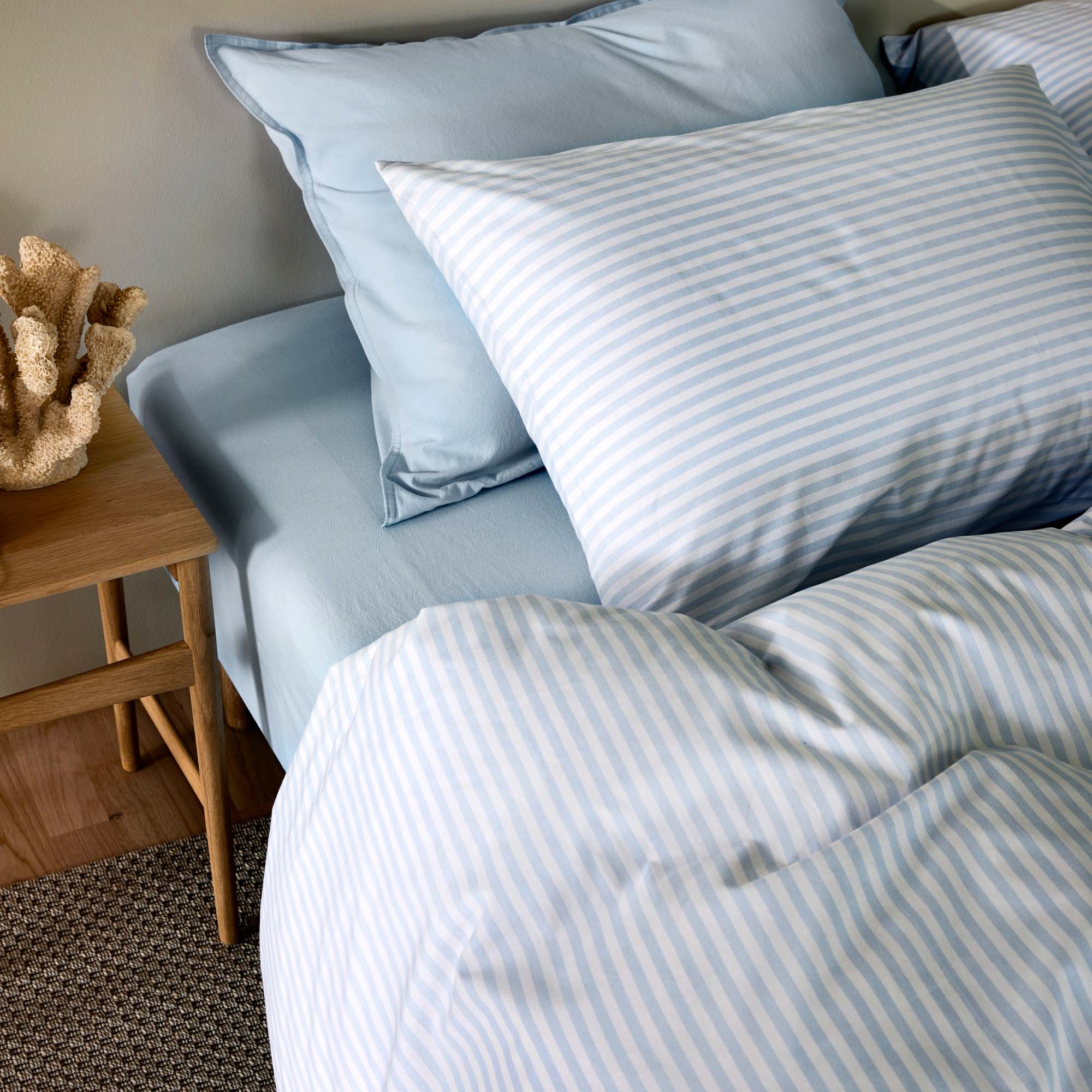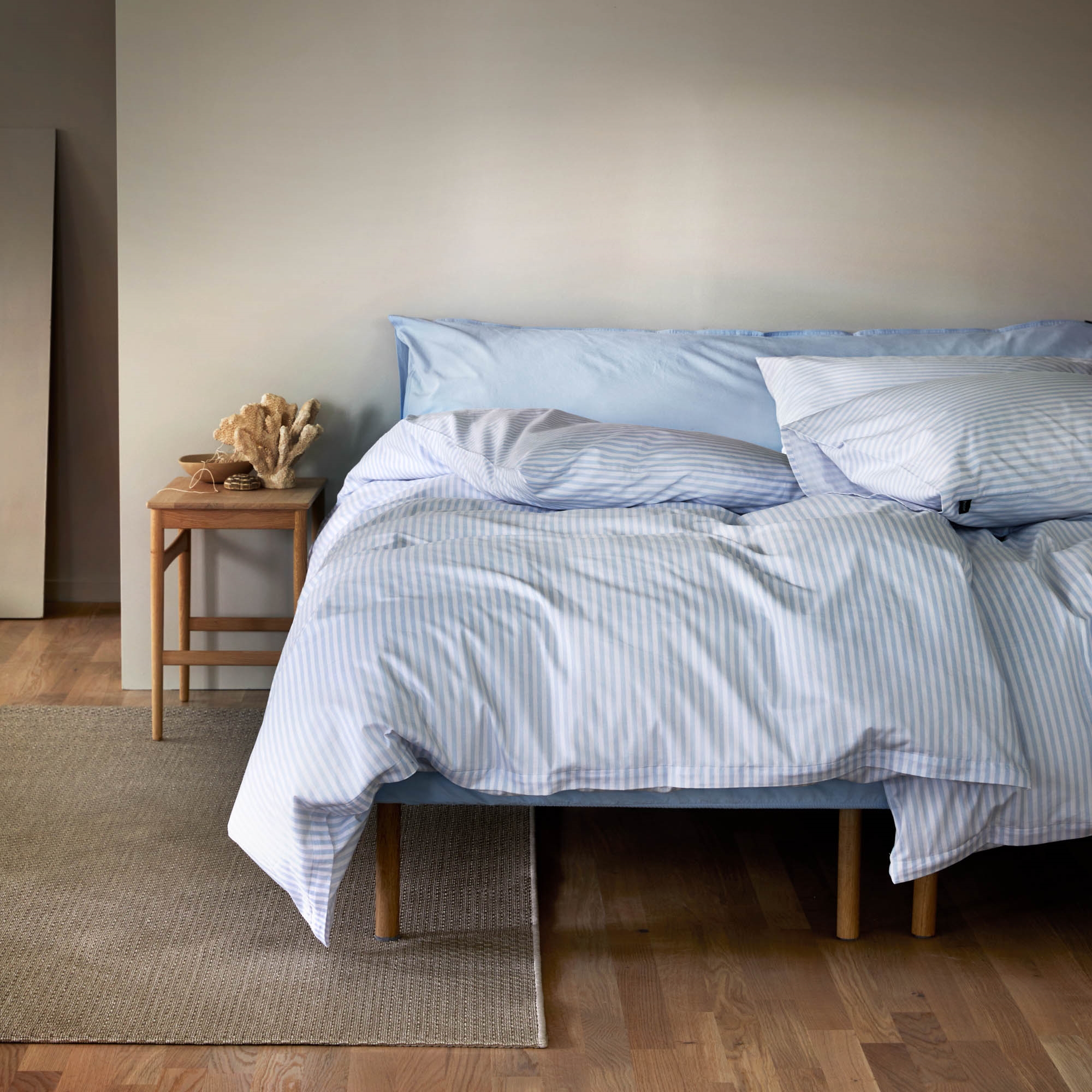 Forside »Sengetøy » Dobbelt sengetøy » Dobbelt sengetøy 200x220 cm Stripete dobbelt sengetøy 200x220 cm - 100% ekstra fin bomull - Tor lyseblå - Sengetøy fra Høie of Scandinavia Spar15% Høie Of Scandinavia 1.299,001.099,00NOKSpar 200,- På lager Trustpilot Antall Legg i kurv Se mer fra: Høie Of Scandinavia Artikkelnummer:7965-5 Les vår sengetøysguide Se vårt store utvalg av laken Se vårt store utvalg av dyner 140x200 Har du spørsmål om produktet? Mykt og glansfulltEkstra fin bomullEASY CARE behandlet - for mindre krøll Dynetrekk: 200x220 cm Putetrekk: 2 stk. á 60x63 cm Materiale: 100% ekstra fin bomull Vev: Ekstra fin 220TC (Thread count = antall tråder pr. kvadrattomme) Farge: Lyseblå Design: Tor Light Blue Merke: Høie of Scandinavia Lukking: Dynetrekk med glidelås, putetrekk med overlapp Vask: 60° Tørketromling: Ja Tåler stryking: Ja Sertifisering: EASY CARE behandlet, hvilket betyr det ikke krøller etter vask Sertifisering: STANDARD 100 by OEKO-TEX® (M27MV9610 OETI). Din garanti for at produktet er fri for helseskadelig kjemi. Mykt dobbelt sengetøy i 100% ekstra fin bomull, som føles mykt mot huden. Den tette vevingen gir en glatt overflate og gjør settet pustende og slitesterkt. Det rolige og enkle designet gjør at sengetøyet passer inn i de fleste soverom. Bomull er et naturlig materiale, som sikrer en komfortabel temperatur hele natten. Dette stripete sengetøysettet til dobbeltdyne er produsert av 100% ekstra fin bomull, som er mykt og ikke minst gir en glatt overflate. Den ekstra fine bomullen er kjent for sin renhet og store slitestyrke. Sengetøysettet er ikke bare mykt og behagelig, men også utrolig slitesterkt, lett og hurtig tørkende. Dette vakre og elegante sengetøyet er produsert med høy fargeektehet. Sengetøysettet er OEKO-TEX sertifisert, hvilket betyr at det er testet fri for helseskadelige kjemikalier. Dette er et tegn på ansvarlig produksjon, som ikke bare gagner miljøet, men også for vår kropp og hud, da det reduserer risikoen for allergiske reaksjoner. I tillegg er sengetøyet også Easy Care behandlet, for mindre krøll og bedre form vask etter vask. Easy Care gjør ditt sengetøy ekstra komfortabelt og lett å stryke. Se det store sortimentet fra Høie her Høie er et skandinavisk merke som står for tradisjon forent med nytenkning. Firmaet har eksistert siden 1850 og har gjennom årene vært med på å forme og utvikle skandinavisk tekstil og design. Sengetøy fra Høie, er hverdagsluksus som alle fortjener. Finn kvalitetslaken her Tilbake til Dobbelt sengetøy 200x220 cm