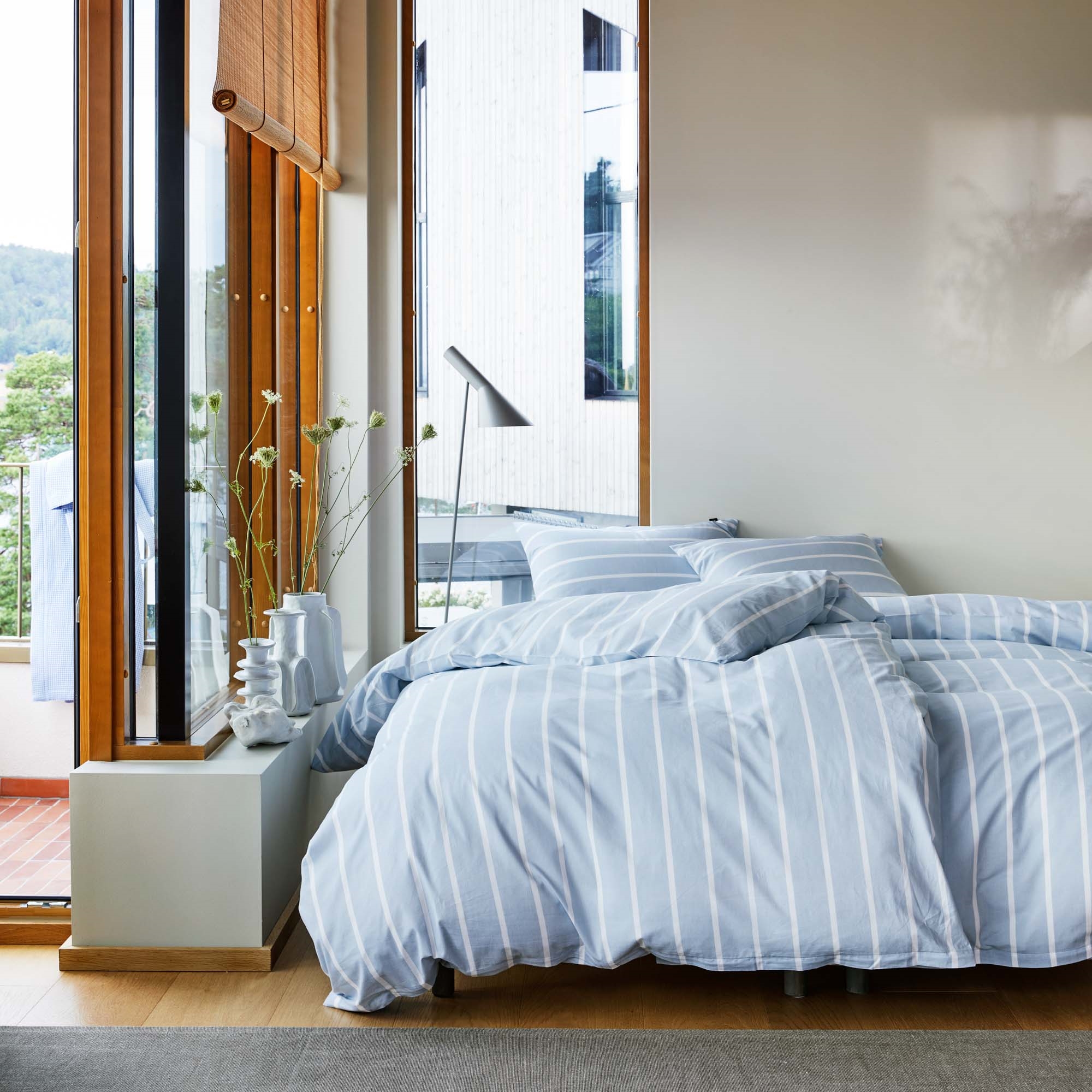Forside »Sengetøy » Dobbelt sengetøy » Dobbelt sengetøy 200x220 cm Stripete dobbelt sengetøy 200x220 cm - 100% ekstra fin bomull - Sander denim blue - Sengetøy fra Høie of Scandinavia Spar15% Høie Of Scandinavia 1.299,001.099,00NOKSpar 200,- På lager Trustpilot Antall Legg i kurv Se mer fra: Høie Of Scandinavia Artikkelnummer:7990-5 Les vår sengetøyguide Se vårt store utvalg av laken Se vårt store utvalg av dyner 140x200 Har du spørsmål om produktet? Mykt og glansfulltEkstra fin bomullEASY CARE behandlet - for mindre krøll Dynetrekk: 200x220 cm Putetrekk: 2 stk. á 60x63 cm Materiale: 100% ekstra fin bomull Vev: Ekstra fin 220TC (Thread count = antall tråder pr. kvadrattomme) Farge: Lyseblå Design: Sander Denim Blue Merke: Høie of Scandinavia Lukking: Dynetrekk med glidelås, putetrekk med overlapp Vask: 60° Tørketrommel: Ja Tåler stryking: Ja Sertifisering: EASY CARE behandlet, hvilket betyr det ikke krøller etter vask Sertifisering: STANDARD 100 by OEKO-TEX® (M27MV94P6 OETI). Din garanti for at produktet er fri for helseskadelig kjemi. Mykt dobbelt sengetøy i 100% ekstra fin bomull, som føles mykt mot huden. Den tette vevingen gir en glatt overflate og gjør settet pustende og slitesterkt. Det rolige og enkle designet gjør at sengetøyet passer inn i de fleste soverom. Bomull er et naturlig materiale, som sikrer en komfortabel temperatur hele natten. Dette stripete sengetøysettet til dobbeltdyne er produsert av 100% ekstra fin bomull, som er mykt og ikke minst gir en glatt overflate. Den ekstra fine bomullen er kjent for sin renhet og store slitestyrke. Sengetøysettet er ikke bare mykt og behagelig, men også utrolig slitesterkt, lett og hurtig tørkende. Dette vakre og elegante sengetøyet er produsert med høy fargeektehet. Sengetøysettet er OEKO-TEX sertifisert, hvilket betyr at det er testet fri for helseskadelige kjemikalier. Dette er et tegn på ansvarlig produksjon, som ikke bare gagner miljøet, men også for vår kropp og hud, da det reduserer risikoen for allergiske reaksjoner. I tillegg er sengetøyet også Easy Care behandlet, for mindre krøll og bedre fasong vask etter vask. Easy Care gjør ditt sengetøy ekstra komfortabelt og lett å stryke. Se det store sortimentet fra Høie her Høie er et skandinavisk merke som står for tradisjon forenet med nytenkning. Firmaet har eksistert siden 1850 og har gjennom årene vært med på å forme og utvikle skandinavisk tekstil og design. Sengetøy fra Høie, er hverdagsluksus som alle fortjener. Finn kvalitetslaken her Tilbake til Dobbelt sengetøy 200x220 cm
