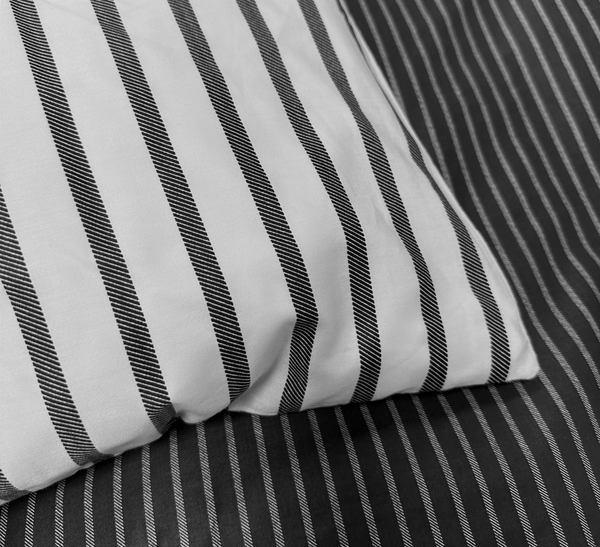 Forside »Sengetøy » Enkelt sengetøy » Enkelt sengetøy 140x200 cm Stripete sengetøy 140x200 cm - Smale linjer sort - Vendbart sengesett - 100 % bomullssateng - By Night sengetøy Spar59% Borg LivingBy Night 899,00369,00NOKSpar 530,- På lager Trustpilot Antall Legg i kurv Se mer fra: Borg Living Artikkelnummer:460-1 Les vår sengetøysguide Se vårt store utvalg av laken Se vårt store utvalg av dyner 140x200 Har du spørsmål om produktet? Sengetøy - 140x200 cm100 % bomullssatengVendbart sengetøy Dynetrekk: 140x200 cm Putetrekk: 1 stk. á 60x63 cm Materiale: 100 % bomullssateng Veving: Ekstra fin 230TC (trådantall = antall tråder per kvadrattomme) Farge: Sort og hvit – Stripete Design: Vendbar – Smale linjer – Sort Merke: By Night Lukking: Dyne- og putetrekk med glidelås Vask: 60 ° Tørketrommel: Ja Kan strykes: Ja Sertifisering: STANDARD 100 by OEKO-TEX® (11-47893) By Night sengesett er produsert i 100 % bomullssateng. Med dette utrolig vakre og elegante sengesettet fra By Night kan familien sove trygt og godt uten å bli utsatt for unødvendige og skadelige kjemikalier. Sengesettet er dansk designet med et friskt og raffinert uttrykk som frisker opp rommet. Sengesettet er vendbart, noe som betyr at både dynetrekket og putetrekket har to forskjellige utseender på hver side. På den måten kan du enkelt endre utseendet på sengen din ved å snu sengetøyet. Sengetøyet er 100 % gjennomfarget, noe som betyr at fargen bindes i bomullsfibrene under produksjonen. Dette gir en utrolig høy fargeekthet og vaskeekthet. Dyne- og putetrekk lukkes med skjult glidelås. Kjøp enkelt matchende putetrekk til putene dine her Frisk opp sengen og soverommet med et flott og deilig sett sengetøy som dette. Benytt denne muligheten til å sikre maksimal sovekomfort ved å legge til et nytt, mykt laken av høy kvalitet. Du finner vårt store utvalg av laken her By Night er preget av dansk design - de gir deg komfortable sovekomponenter i høyeste kvalitet. By Night produserer sengetøy og laken for hele familien og legger stor vekt på tidens trender, slik at produksjonen alltid involverer moteriktige farger og design. Tilbake til Enkelt sengetøy 140x200 cm