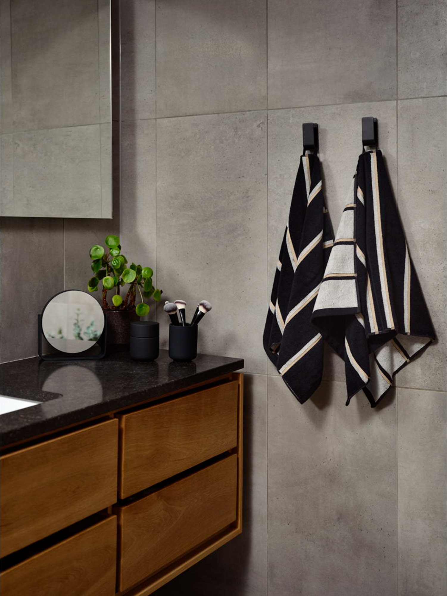 Forside »Oversættelse færdig Svart håndkle - 50x100 cm - Zone Denmark Zone Knallpris:249,00NOK På lager Trustpilot Antall Legg i kurv Se mer fra: Zone Artikkelnummer:37622-3 Se vårt store utvalg av badematter til gulvet Se vårt utvalg av håndklepakker Se vårt store utvalg av badekåper til hele familien Har du spørsmål om produktet? Type: HåndkleStørrelse: 50x100 cmFarge: SvartMateriale: 100% bomull/600 gVask: 60°Tørketrommel: Ja Sertifisering: STANDARD 100 by OEKO-TEX® (2668CIT CITEVE) Sauna er navnet – og stripene taler for seg selv. Serien er inspirert av de stramme linjene i en klassisk trekledd sauna, hvor designet leker elegant med perspektiv og fargebalanse. Hver side av håndkleet fremhever sin egen dominerende farge - en fin detalj som gir deg to ulike uttrykk i ett og samme håndkleDe retroinspirerte stripene tilfører et grafisk, urbant preg, og med en myk, kraftig kvalitet i garnfarget 600 grams bomull, føles håndkleet like deilig som det ser ut.Velg mellom 50 x 100 og 70 x 140 cm – og la Sauna sette sitt grafiske, fargerike preg på baderommet. Tilbake til Oversættelse færdig