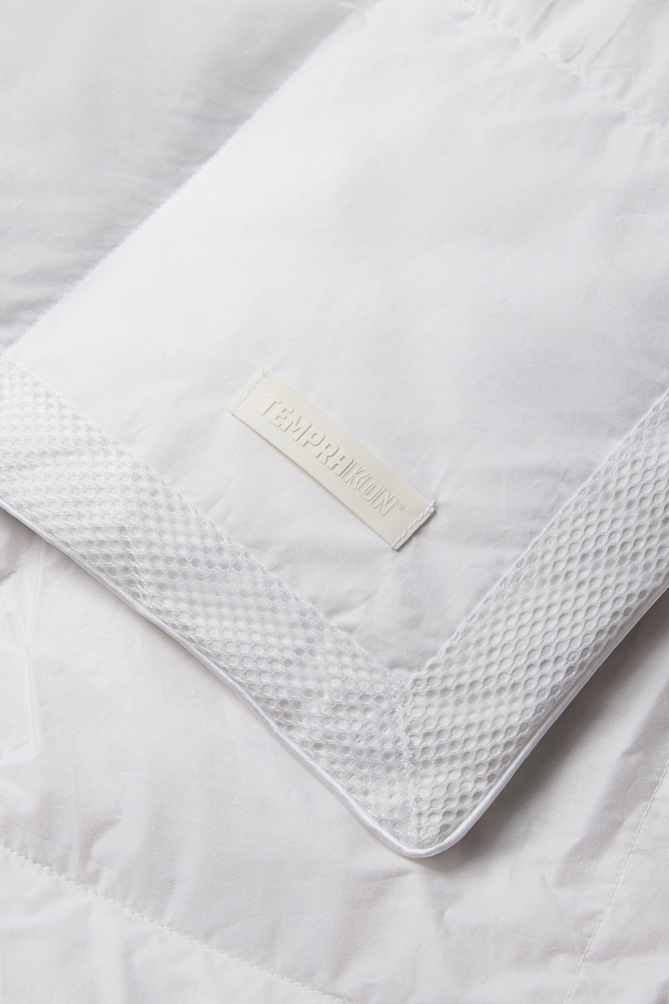 Forside »Overmadrasser & madrassbeskyttere » Madrassbeskyttere Temperaturregulerende madrassbeskytter - 180x210 cm - Downtopper Temprakon Zone Spar30% Temprakon 6.099,004.299,00NOKSpar 1.800,- På lager Trustpilot Antall Legg i kurv Se mer fra: Temprakon Artikkelnummer:1010405 Les vår madrassbeskytterguide Se vårt store utvalg av ekstra lange laken Se vårt utvalg av overmadrasser Har du spørsmål om produktet? Størrelse: 180x210 cm.Materiale: 60% hvite dun 40% små fjær (naturfyll)Temprakon Zone Downtopper Størrelse: 180x210 cm Høyde: ca. 2 cm. Fyllvekt: 1050g Fyllmateriale: 60% hvite dun 40% små fjær (naturfyll) Trekk: 100% bomull Elastikk: Ja Type: Madrassbeskytter med temperaturregulerende lag Konstruksjon: Kassettsydd Vask: 60 grader - Viktig å bruke enzymfritt vaskemiddel Sertifisering: STANDARD 100 by OEKO-TEX® (1176-194) Sertifisering: NOMITE Sertifisering: Down PASS Sertifisering: FRESH Certified space technology Sertifisering: Romsertifisert Se laken i samme størrelse Madrassbeskytter / Downtopper brukes til å legge oppå din eksisterende overmadrass, og dermed oppnår du suveren temperaturregulering. Når du legger deg på madrassbeskytteren føles den umiddelbart kald, men ettersom den absorberer varmen din, begynner den å regulere temperaturen din. Du holder deg kjølig når du er varm og lun når du er kald. En superlekker madrassbeskytter med aktiv temperaturregulering. Madrassbeskytteren er utstyrt med praktiske elastiske bånd i hjørnene, slik at madrassbeskytteren sitter godt på overmadrassen din. Hensikten med en madrassbeskytter er å beskytte madrassen din og/eller overmadrassen mot fuktighet, smuss og bakterier. Derfor kalles en madrassbeskytter ofte også for madrassbeskytter eller beskyttende madrass. Når du bruker en madrassbeskytter forlenger du levetiden på sengen eller overmadrassen din, samtidig som du oppnår et sunnere sovemiljø. Madrassbeskytteren kan krympe etter vask (5-9 %), så det er viktig å strekke madrassbeskytteren under tørking. Temprakon Zone Downtopper - Downtopper er en vaskbar madrassbeskytter - Perfekt for deg som ønsker å regulere temperaturen på sengen. Kombinert med Temprakon dyner og puter, skaper du den perfekte klimasonen for en god natts søvn. Tilbake til Madrassbeskyttere