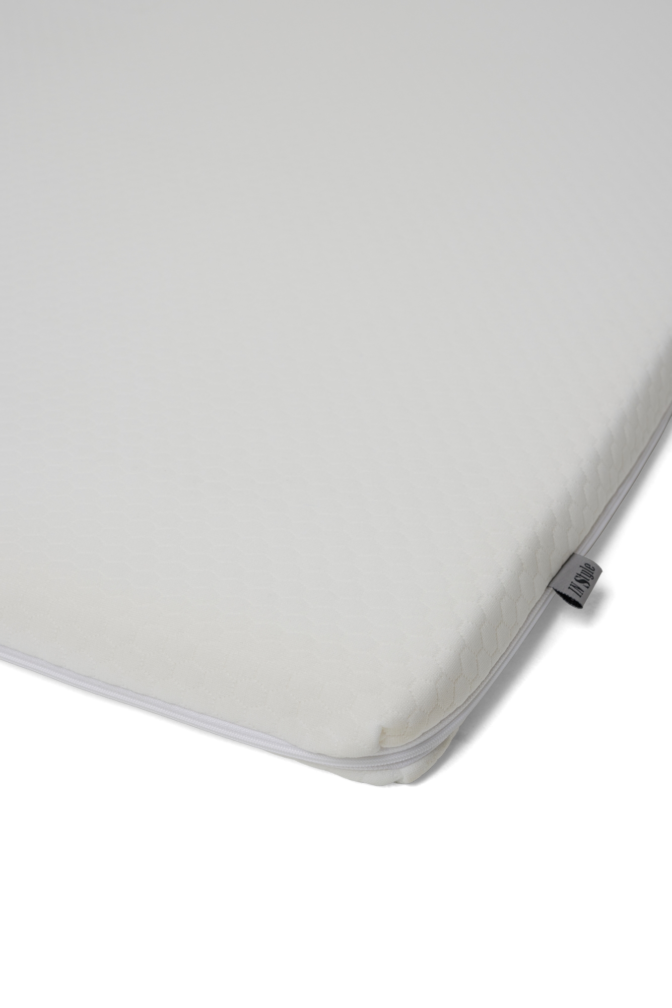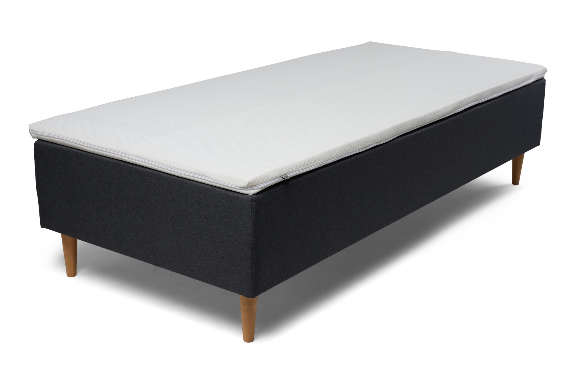 Topmadrassen er produsert med en skumkjerne på 40 mm høy purskum, et lett og behagelig materiale som tilpasser seg kroppen og gir en myk liggekomfort. Topmadrassens avtagbare trekk kan vaskes på 40°, og er dermed lett å vedlikeholde. Topmadrassen kan brukes sammen med de fleste typer kjernemadrasser, og er derfor også et godt tilvalg til for eksempel gjestesengen eller campingvognen din.