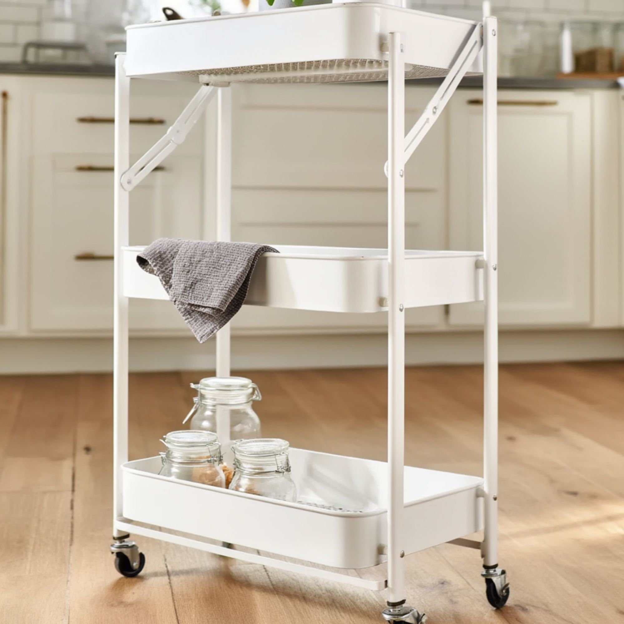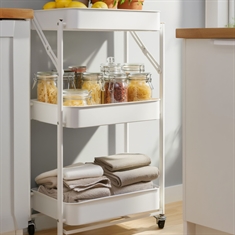 Forside »Innredning » Oppbevaring » Rullevogner Tralle på hjul med 3 kurver - 78x45x30 cm - Hvit metallvogn - Enkel oppbevaring Spar44% HOME-TEX 899,00499,00NOKSpar 400,- På lager Trustpilot Antall Legg i kurv Se mer fra: HOME-TEX Artikkelnummer:PR788 Har du spørsmål om produktet? Plassbesparende og sammenleggbarFire svingbare hjul for enkel bevegelseTo låsefunksjoner for ekstra stabilitet Materiale: Metall Mål: 78x45x30 cm Kurvemål: 40x29 cm Farge: Hvit Hjul: 4 stykker svingbare hjul - Med låsefunksjon Oppbevaringsvogn: Organisert og stilig hjem Oppbevaringsvognen er løsningen for deg som ønsker et organisert og stilig hjem. Med sine tre romslige kurver gir vognen god plass til oppbevaring. Den er laget av solid hvit metall, som gir både funksjonalitet og et moderne preg til hjemmet ditt. Detaljer Mål: 78x45x30 cm Kurvemål: 40x29 cm Farge: Hvit Metall Metall: Sterkt og slitesterkt materiale Metall er kjent for sin styrke og holdbarhet, noe som gjør det til et ideelt materiale for en oppbevaringsvogn. Denne vognen tåler ikke bare daglig bruk, men vil også holde sitt moderne og stilfulle utseende i mange år. Plassbesparende design Det plassbesparende designet gjør at vognen kan slås sammen når den ikke er i bruk. Dette betyr at du kan ha ekstra oppbevaring når du trenger det, uten at det tar plass i hjemmet ditt. Låsefunksjonen gir ekstra stabilitet To av de fire svinghjulene har låsefunksjon. Dette gir ekstra stabilitet når vognen er i bruk og sikrer at den holder seg på plass når den er parkert. Tenk deg hvor enkelt det vil være å holde hjemmet ditt organisert med vår oppbevaringsvogn. Enten du bruker den på kjøkkenet, på badet eller i stuen, vil den gi både funksjonalitet og stil til hjemmet ditt. For lignende produkter, vennligst besøk Innredning. Tilbake til Rullevogner