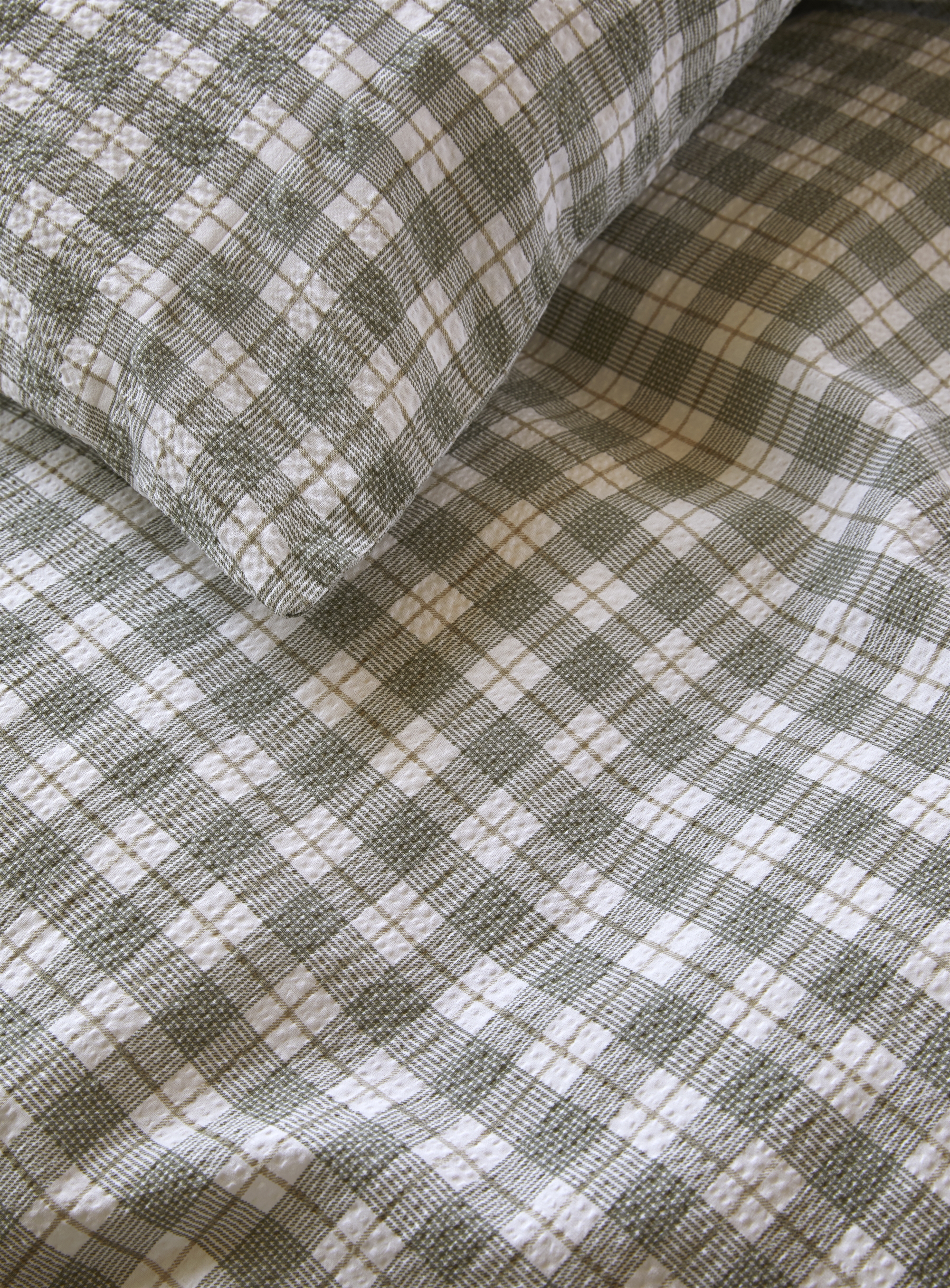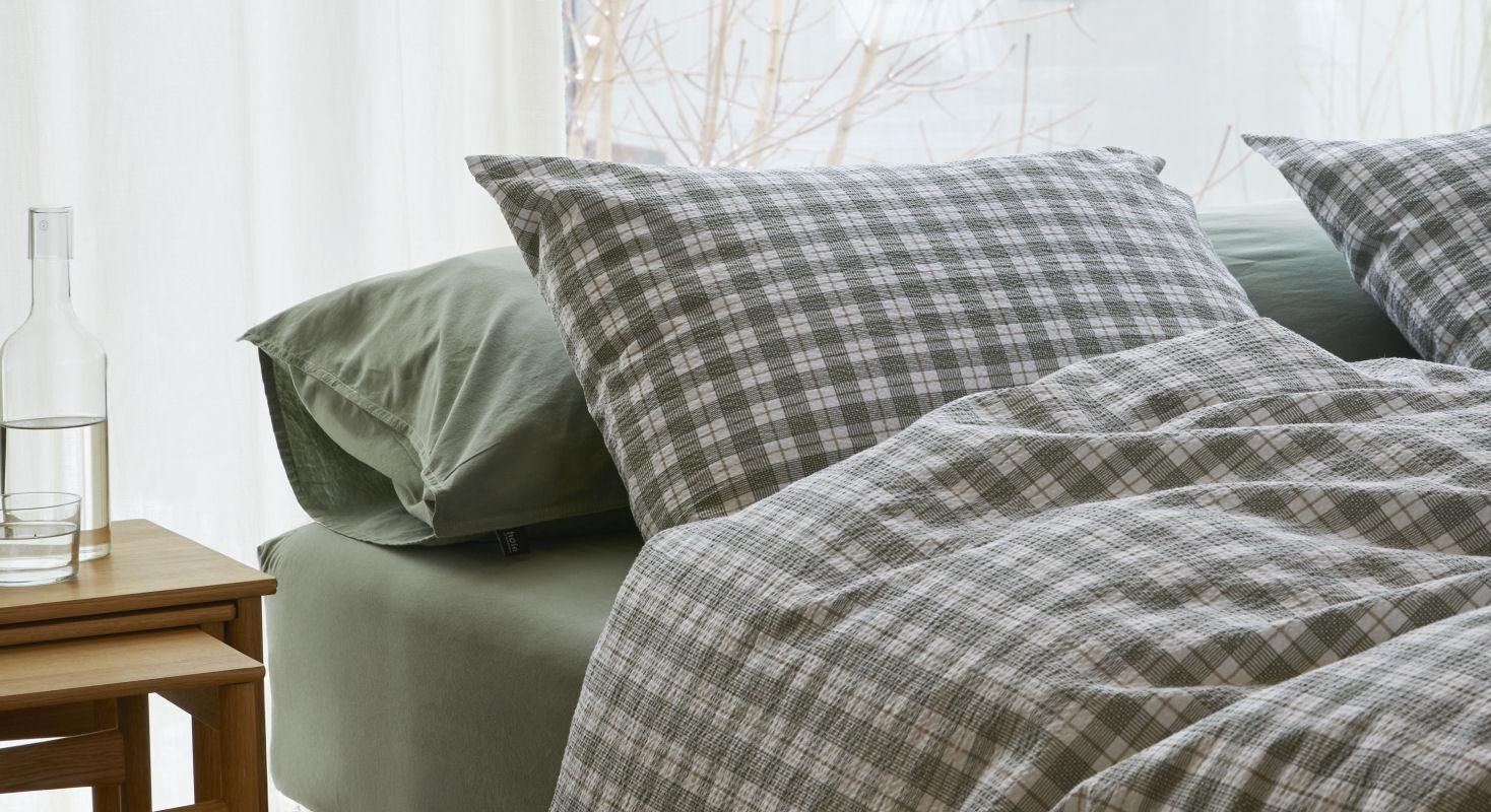 Forside »Sengetøy » Enkelt sengetøy » Enkelt sengetøy 140x200 cm Vevd krepp sengetøy 140x200 cm - 100 % myk bomull - Grønn med ruter - Kreppsengetøy - Kyrre Høie Of Scandinavia Spar40% Høie Of Scandinavia 999,00599,00NOKSpar 400,- På lager Trustpilot Antall Legg i kurv Se mer fra: Høie Of Scandinavia Artikkelnummer:8341-1 Les vår sengetøysguide Se vårt store utvalg av laken Har du spørsmål om produktet? OEKO-TEX® sertifisertMykt, lett og luftigEksklusivt luftig vevd krepp Dynetrekk: 140x200 cm Putetrekk: 1 stk. á 60x63 cm Materiale: 100% myk bomull - Vevd krepp Vev: 200TC kreppsengetøy (Thread count = antall tråder per kvadrattomme) Farge: Grønn med ruter Design: Kyrre dempet grønn Merke: Høie of Scandinavia Lukking: Dynetrekk med glidelås, putetrekk med overlapp Vask: 60° Tørketrommel: Ja Stryking: Nei Sertifisering: STANDARD 100 by OEKO-TEX® (19.HIN.85821). Din garanti for at produktet er fri for helseskadelig kjemi. De ekstra fine bomullstrådene skaper en delikat kreppvev. Perfekt for deg som elsker den myke og knitrende følelsen. I vevd bomullskrepp i 100 % bomull dannes de unike luftlommene i vevingen. Kreppvevingen er varm om vinteren og sval om sommeren, og gir en myk og sprø følelse av krepp vask etter vask. En klassiker som ikke trenger stryking. Dette rutete Kyrre sengetøyet er produsert av 100 % myk bomull med vevemetoden Kreppsengetøy, også kalt bomullskrepp. Denne vevingen gir rynkeeffekten og skaper hulrom for små luftlommer i materialet, noe som gjør at sengetøyet føles lett, luftig og ofte kjørligere enn andre typer materialer. Om sommeren vil sengetøyet føles luftig, og om vinteren vil du kunne kjenne varmen fra den myke bomullen, noe som er den unike fordelen denne vakre kombinasjonen av materiale og veving gir. Sengetøysettet bør ikke strykes, da det har sine luftlommer i selve vevingen. Sengetøy med denne vevningstypen er spesielt godt for deg som tidvis opplever å ha det varmt om natten; her kan sengetøyet tilføre økt pusteevne og høy absorpsjon. Kjøp enkle putetrekk til dine ekstra puter her Frisk opp sengen og soverommet med et fint og lekkert sett sengetøy som dette. Benytt samtidig muligheten til å sikre deg maksimal sovekomfort, ved å tilføye et nytt mykt laken av høy kvalitet. Du finner vårt store utvalg av kvalitetslaken her Høie er et skandinavisk merke som står for tradisjon forent med nyskapning. Selskapet har eksistert siden 1850 og har gjennom årene vært med på å forme og utvikle skandinavisk tekstil og design. Sengetøy fra Høie er hverdagsluksus som alle fortjener. Tilbake til Enkelt sengetøy 140x200 cm