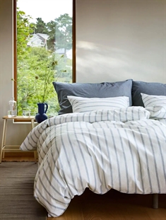 Forside »Sengetøy » Enkelt sengetøy » Enkelt sengetøy 140x200 cm Vevet krepp sengetøy 140x200 cm - 100% myk bomull - Hvit med blå striper - Kreppsengetøy - Eilert Høie Of Scandinavia Spar40% Høie Of Scandinavia 999,00599,00NOKSpar 400,- På lager Trustpilot Antall Legg i kurv Se mer fra: Høie Of Scandinavia Artikkelnummer:8037-1 Les vår sengetøyguide Se vårt store utvalg av laken Har du spørsmål om produktet? OEKO-TEX® sertifisertMykt, lett og luftigEksklusivt luftig vevd krepp Dynetrekk: 140x200 cm Putetrekk: 1 stk. á 60x63 cm Materiale: 100% myk bomull - Vevet krepp Vev: 200TC kreppsengetøy (Thread count = antall tråder per kvadrattomme) Farge: Hvit med blå striper Design: Eilert denim blå Merke: Høie of Scandinavia Lukking: Dynetrekk med glidelås, putetrekk med overlapp Vask: 60° Tørketrommel: Ja Stryking: Nei Sertifisering: STANDARD 100 by OEKO-TEX® (19.HIN.85821). Din garanti for at produktet er fri for helsefarlig kjemi. De ekstra fine bomullstrådene skaper en delikat kreppvev. Perfekt for deg som elsker den myke og knitrende følelsen. I vevd bomullskrepp i 100% bomull skapes de unike luftlommene i vevingen. Kreppvevingen er varm om vinteren og kjølig om sommeren, og gir en myk og sprø følelse av krepp vask etter vask. En klassiker som ikke trenger stryking. Dette stripete sengetøyet er produsert av 100% myk bomull med vevemetoden Bæk og bølge, også kalt bomullskrepp. Denne vevingen gir rynkeeffekten og skaper hulrom til små luftlommer i materialet, som gjør at sengetøyet kjennes lett, luftig og ofte kjøligere enn andre materialer. Om sommeren vil sengetøyet kjennes luftig, og om vinteren vil du merke varmen fra den myke bomullen, noe som er en unik fordel denne kombinasjonen av materiale og veving gir. Sengetøysettet bør ikke strykes, da det har sine luftlommer i selve vevingen. Sengetøy med denne vevningstypen er spesielt godt for deg som tidvis opplever at du har det varmt om natten; her kan sengetøyet tilføre økt pusteevne og god absorbering. Kjøp putetrekk til dine ekstra puter her Frisk opp sengen og soverommet med et flott og deilig sett sengetøy som dette. Benytt samtidig muligheten til å sikre deg maksimal sovekomfort ved å legge til et nytt mykt laken av høy kvalitet. Du finner vårt store sortiment av kvalitetslaken her Høie er et skandinavisk merke som står for tradisjon forent med nytenkning. Firmaet har eksistert siden 1850 og har gjennom årene vært med på å forme og utvikle skandinavisk tekstil og design. Sengetøy fra Høie er hverdagsluksus som alle fortjener. Tilbake til Enkelt sengetøy 140x200 cm