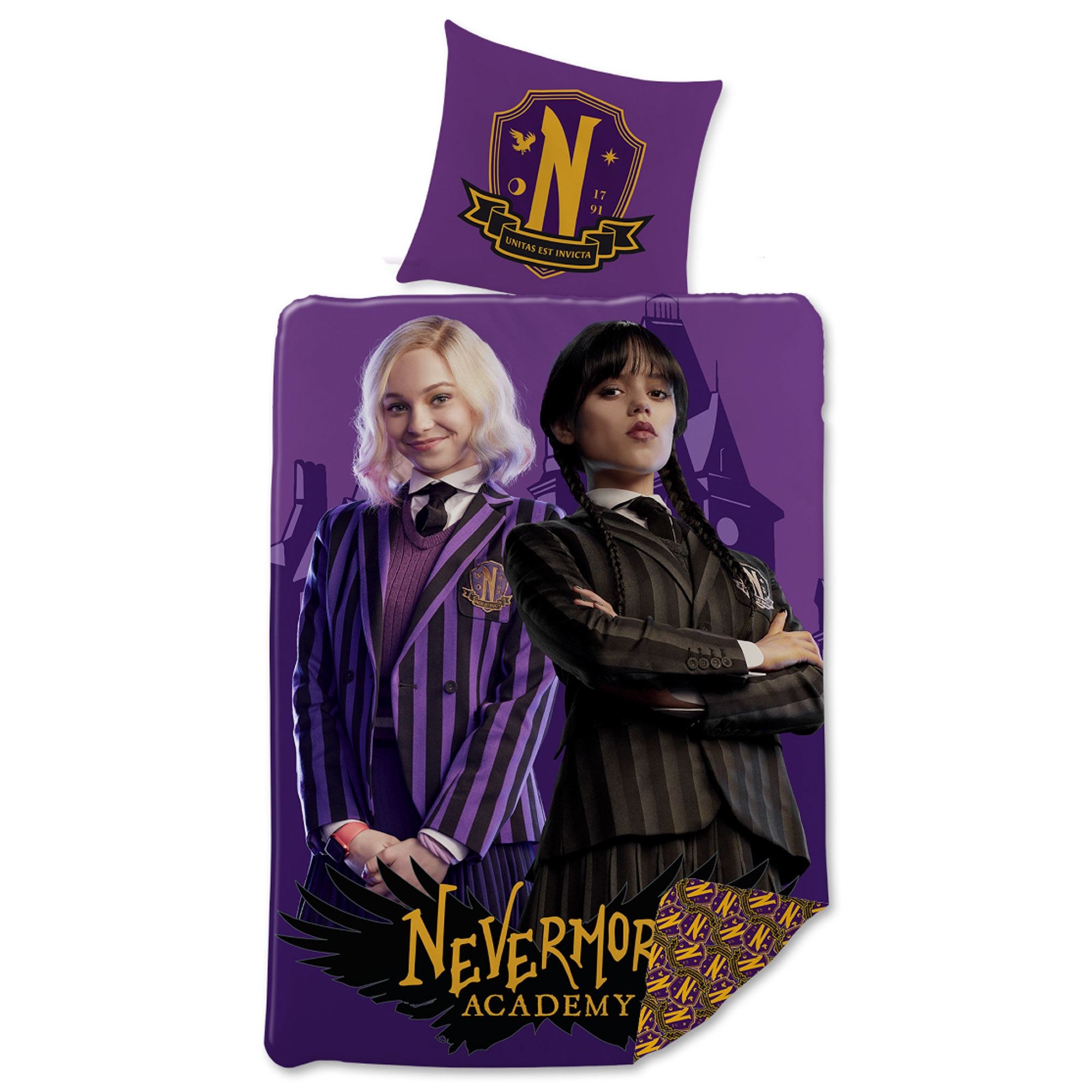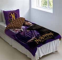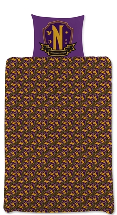 Forside »Sengetøy » Sengetøy til barn » Sengetøy til barn 140x200 cm Wednesday sengetøy - 140x200 cm - Nevermore academy - 2 i 1 sengesett - 100% bomull Spar20% Licens 499,00399,00NOKSpar 100,- På lager Trustpilot Antall Legg i kurv Se mer fra: Licens Artikkelnummer:1836-1 Les vår sengetøyguide Se vårt store utvalg av lagner Se vårt store utvalg av dyner 140x200 Har du spørsmål om produktet? Høy pusteevneMykt og deilig bomullOEKO-TEX® sertifisert Dynetrekk: 140x200 cm Putetrekk: 60x63 cm Materiale: 100% myk bomull Farge: Lilla Motiv: Wednesday Design: Vendbar - Forside med Wednesday Addams og Enid Sinclair, bakside med all-over print av logo Lukking: Dyne med knapper, putetrekk med overlapp Vask: 60° Tørketrommel: Ja Tåler stryking: Ja Sertifisering: STANDARD 100 by OEKO-TEX® (2022OK2846 AITEX). Din garanti for at produktet er fritt for helseskadelig kjemi. Sengesett i 100% myk bomull, med Wednesday Addams & Enid Sinclair. Med lette og pustende bomullstråder gir dette sengesettet en myk overflate som gjør dynen behagelig for barnet å sove med. Et slitesterkt sengesett med høy pusteevne og absorberingsevne, som vil hjelpe med å gjøre leggetid til en god opplevelse. Sengesett med Wednesday fra den kjente serien på Netflix. En stor favoritt blant unge og tenåringer. Sengesettet er vendbart. På forsiden sees et stort bilde av Wednesday og hennes beste venninne Enid, mens baksiden har et all-over print av logo. Drøm deg inn i den magiske og forunderlige verden med dette kule sengetøyet. Sengesettet er produsert i 100% myk bomull som gjør settet slitesterkt og med høy pusteevne. Den rene bomullskvaliteten gir et deilig og mykt sengesett som bidrar til å fremme sovekomfort for barnet. Bomullssengetøy kan vaskes på 60° i vaskemaskin, noe som også bidrar til å opprettholde et høyt hygienisk nivå. Sengetøyet er i tillegg fremstilt med OEKO-TEX sertifisering, som er din garanti for at settet er fritt for skadelig kjemi. Gå på jakt etter favorittene og mye mer i vårt store utvalg av tilbehør til barnerommet For barnet bør sengen være et trygt sted, og alle elementene skal sammen skape myke og fine omgivelser for barnet å finne ro i. Bruk derfor gjerne barnets interesser for å skape et trygt soverom for barnet. Hos oss kan du finne et stort utvalg av tilbehør til sengen og barnerommet, fra lagner til dyner, puter, sengetøy og mye mer, og masse produkter med alle barnas favoritter. Alt sammen elementer som kan bidra til å skape det rette sovemiljøet og rommet for ditt barn. Her kan du finne deilige og myke kvalitetslagner Tilbake til Sengetøy til barn 140x200 cm